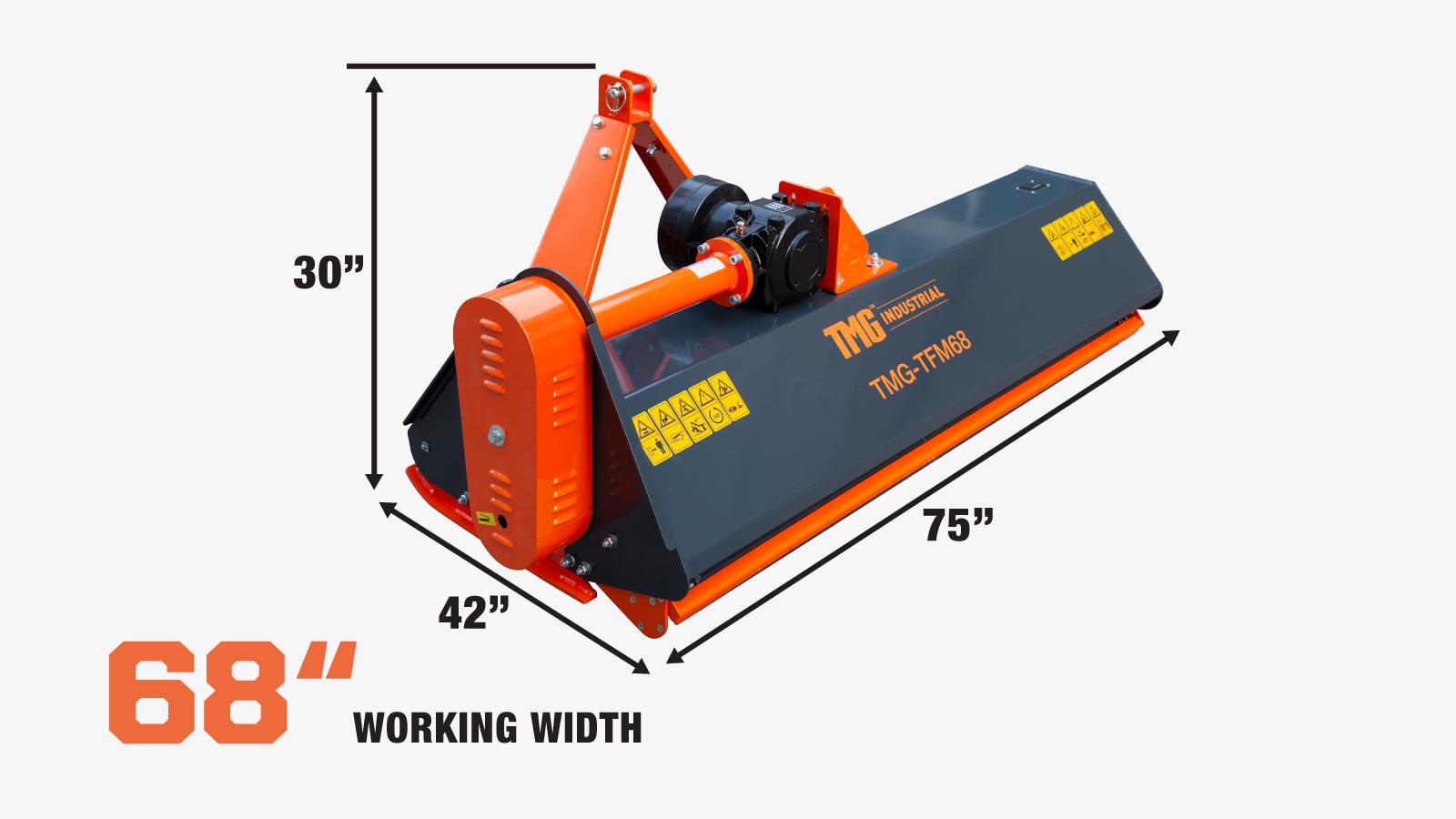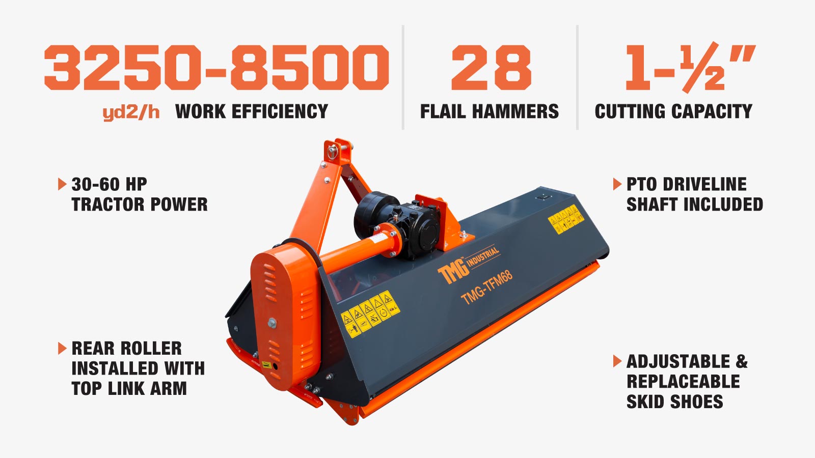 68" Flail Mower, 3-Point Hitch, 30-60 HP Tractor, PTO Drive Shaft, TMG-TFM68