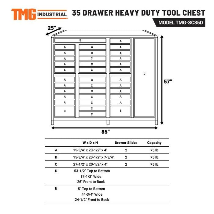 35 Drawer 85'' Tool Storage Chest (Discontinued – No Longer Available) TMG-SC35D