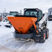 Skid Steer Tilt-N-Scoop Material Spreader, 10 Cu-Ft Capacity, 30’ Wide Spread Range, Snow salt spreader,6.5-12 GPM Flow Rate, Sidewalk Skirt, Universal Mount, TMG-MSS10
