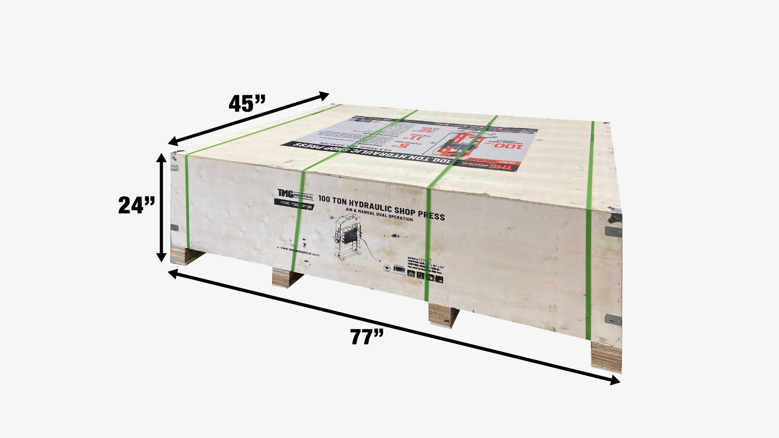 100 Ton Capacity Hydraulic Shop Press, Heavy Duty Pressing, Protective Grid Guard, Fully Welded H-Frame, Air & Manual Dual Operation, TMG-SP100-shipping-info-image