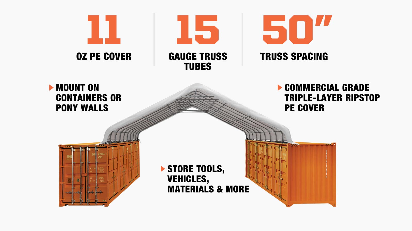 30' x 40' PE Fabric Pro Series Container Peak Roof Shelter, Fire Retardant, 10' Ceiling Height, UV Protected, TMG-ST3041CE(Previously TMG-ST3040CE)