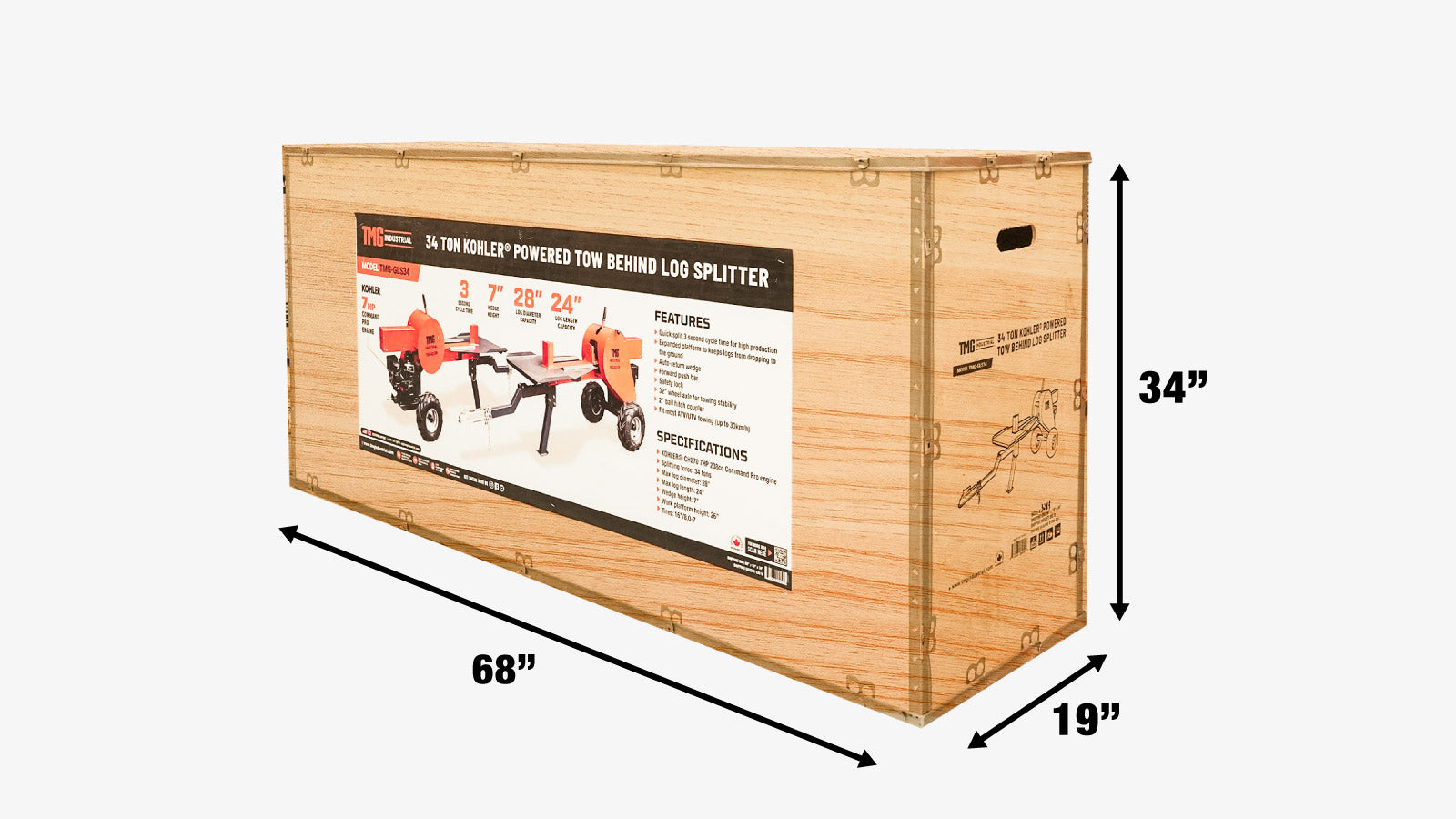 34 Ton ATV/UTV Tow-Behind Log Splitter, 7 HP Kohler Gasoline Engine, 28" Log Diameter Capacity, 3-Sec Cycle Time, TMG-GLS34