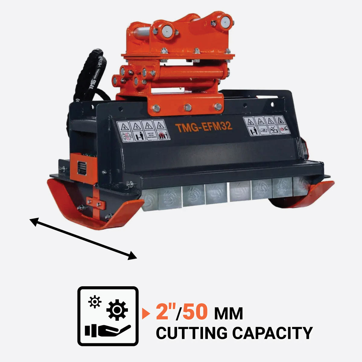 32" Excavator Brush Flail Mower, 3 to 5-ton Carrier, 10-16 GPM, TMG-EFM32