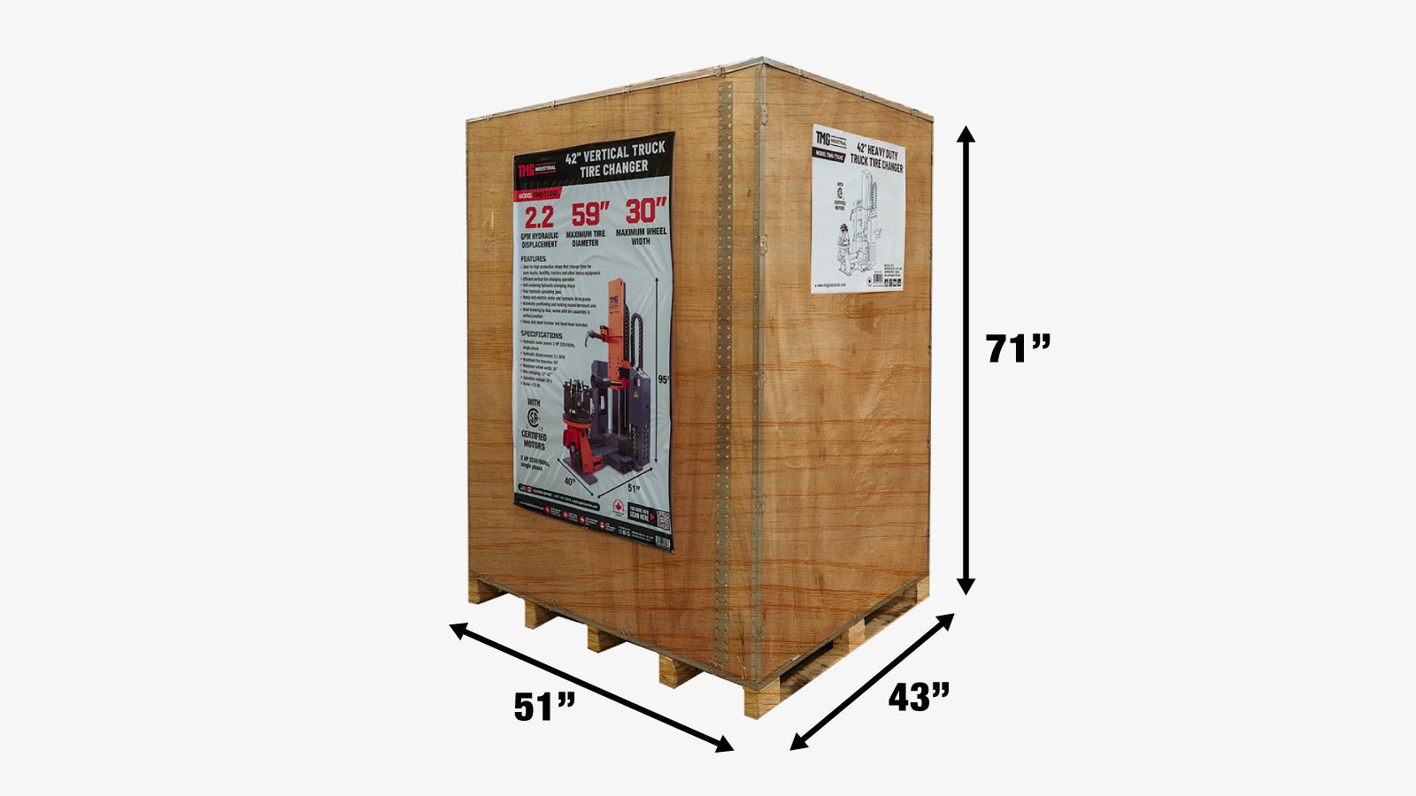 42" Heavy Duty Truck Tire Changer, 59" Tire Capacity, Upright/Vertical Tower Design, Bead Breaker w/Disc & Bead Hook, CSA certified Motor, TMG-TTC42