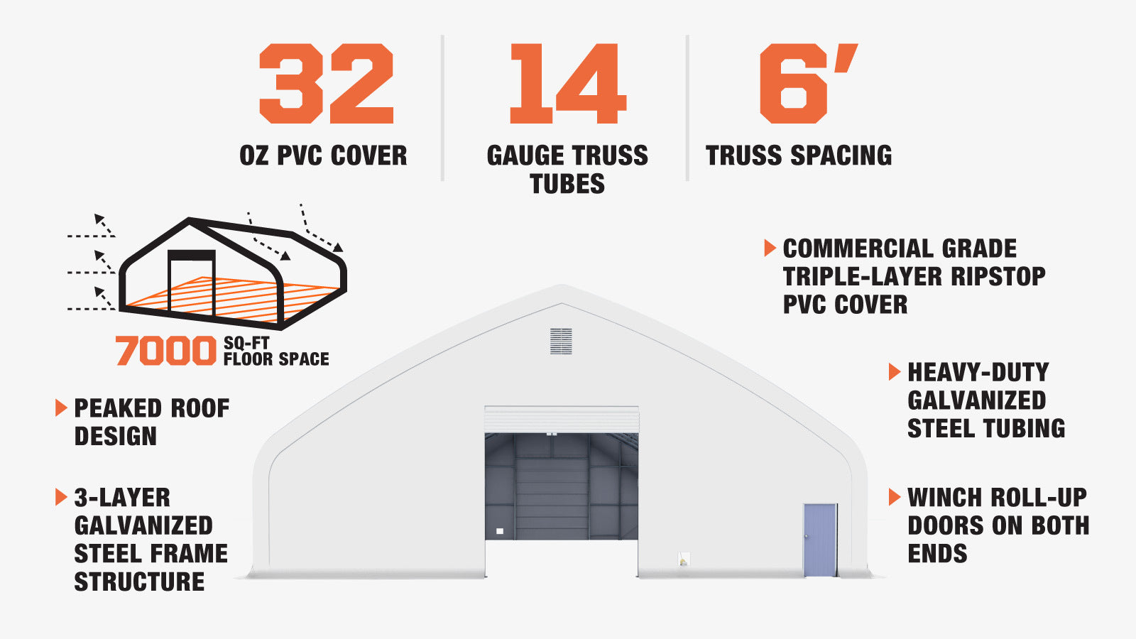 Pro Series 70' x 100' Dual Truss Storage Shelter with Heavy Duty 32 oz PVC Cover & Drive Through Doors, TMG-DT70100-PRO