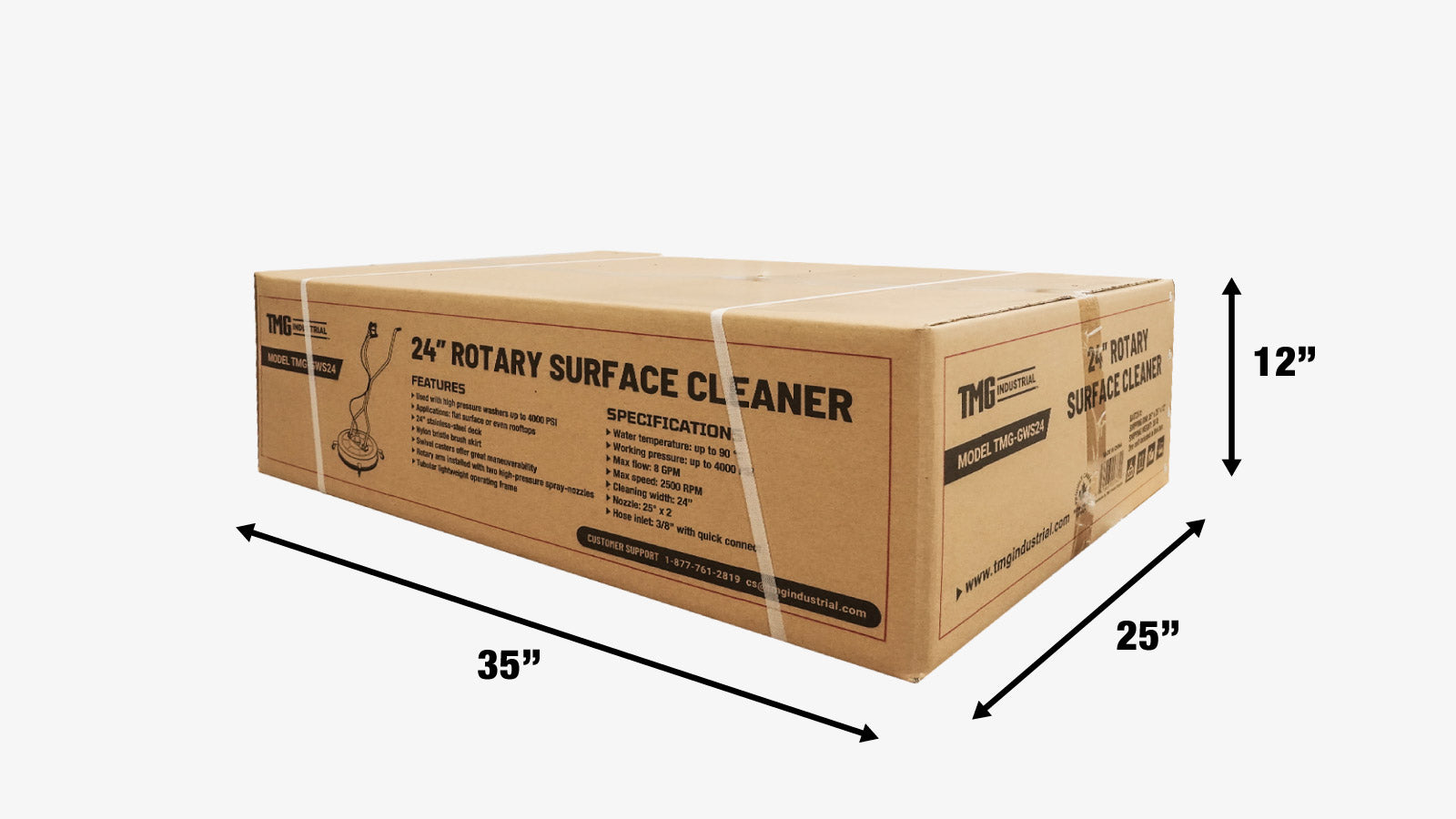 The TMG-GWS24 Rotary Flat Surface Cleaner is a dependable, high-performance machine that is great for use on all types of large, flat surfaces. Designed to be used with high pressure washer up to 4000 PSI to deliver an incredibly smooth, clean and consistent finish. For use on asphalt, decks, concrete pads, factory floors, commercial surfaces and more with its nylon bristle brush skirt.
