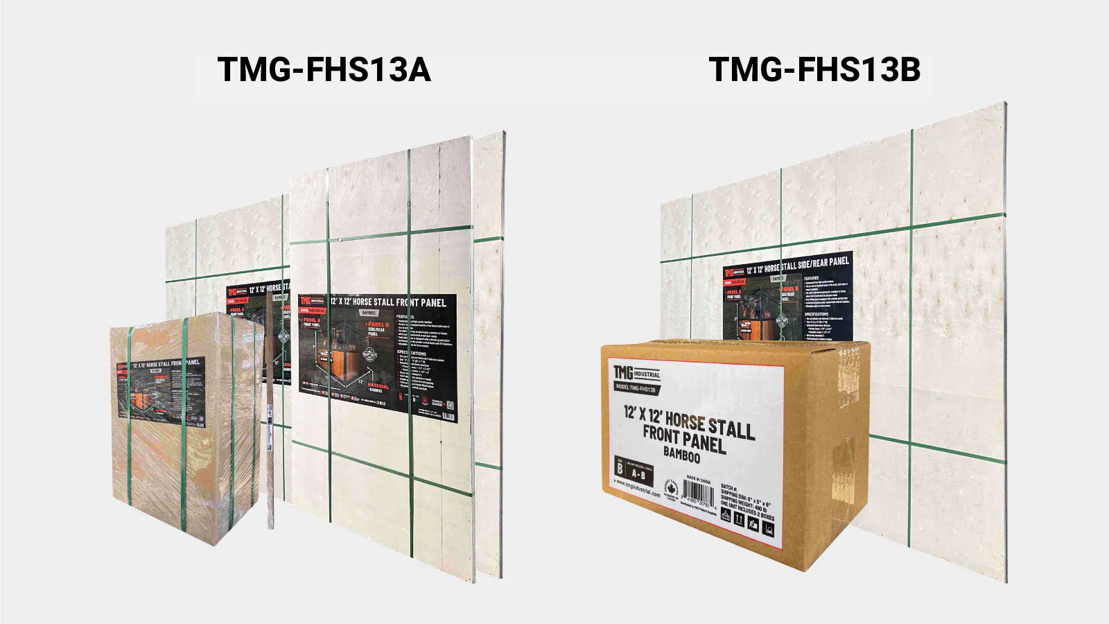 TMG-FHS13A: Panel A (12' front panel with sliding gate, window and feeder bowl and hay feeder), Material: Bamboo
