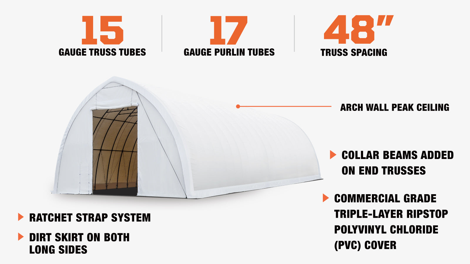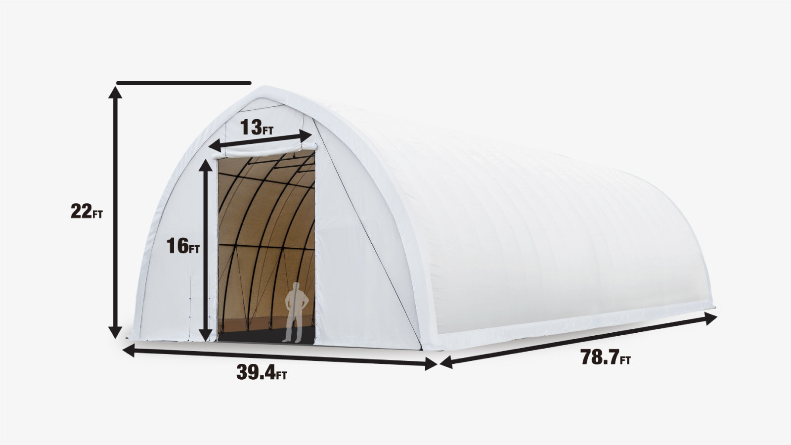 TMG-ST4081V 40' x 80' Peak Ceiling Storage Shelter, Single Truss, 17oz Commercial Grade PVC Cover, 13' Wx 16' H Wide Open Door on Two End Walls